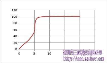 從圖中我們可以看出,固化并非是勻速的,剛開始固化稍慢,大約5s的時候,反應速度加快,大概在7s左右時,固化完全。這可能是因為剛開始碳碳雙鍵在打開時需要吸收部分能量,而交聯(lián)過程相對較快。